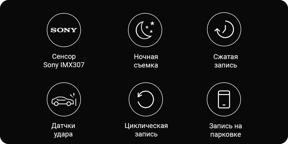 Регистратор оснащен высокочувствительным сенсором Sony IMX307, обеспечивающим высокое качество съемки в любую погоду и в темное время суток. Каждая линза имеет специальное покрытие, которое не меняет своих свойств в случае перепада температуры.