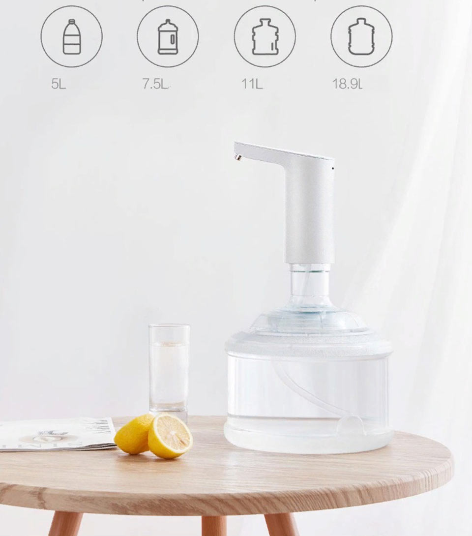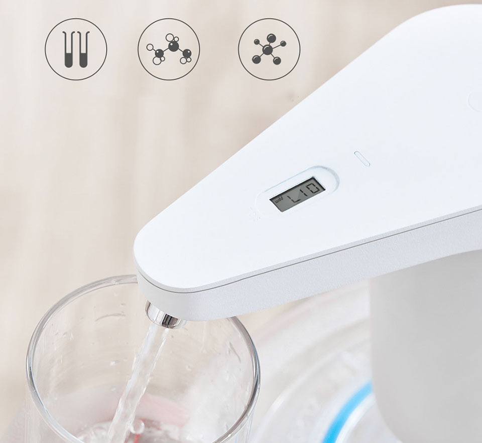 Автоматическая помпа для бутилированной воды с встроенным тестером общей минерализации TDS. Имеет сенсорное управление, аккумулятор со светодиодной индикацией заряда, который обеспечит от одного заряда перекачку 145 литров воды. Помпа изготовлена с применением экологичных материалов, подходит для бутылей объёмом от 5 до 18,9 литра.