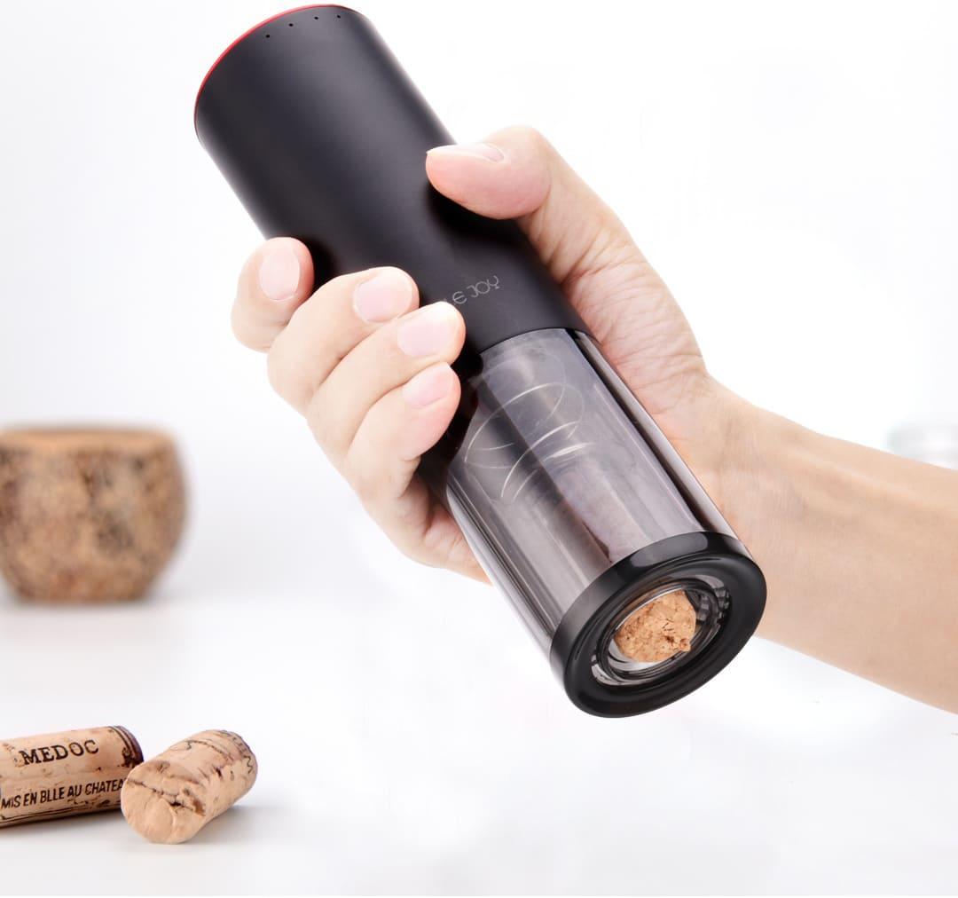 Конструкция электроштопора продумана таким образом, чтобы бутылка не нагревалась в процессе открытия, вино не взбалтывалось, а крошки от пробки не попадали внутрь.