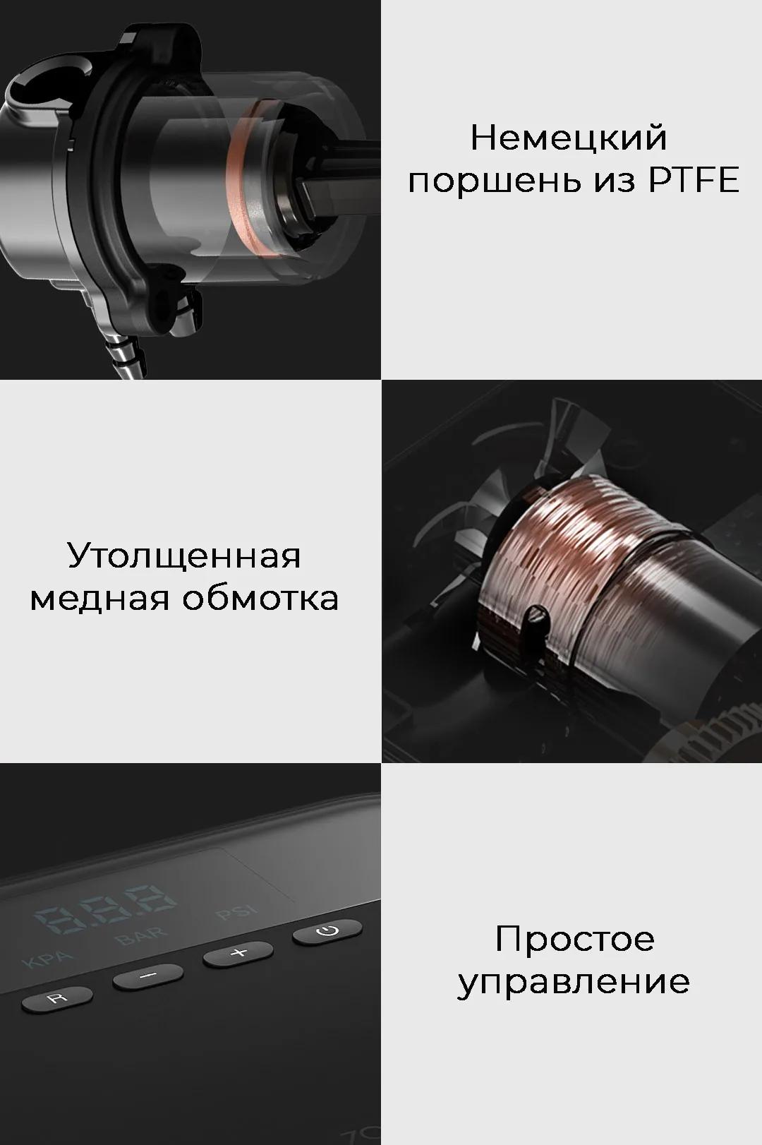 Слаботочный магнитный двигатель позволяет осуществлять непрерывную накачку шин в течение 30 минут, что более чем достаточно для ежедневного использования устройства.