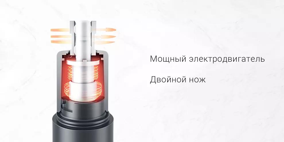 Прибор получил двойной нож, который одним движением срезает длину нежелательных волосков. При этом он не повреждает кожу. Мощный электродвигатель способствует высокому значению крутящего момента и низкому уровню шума.