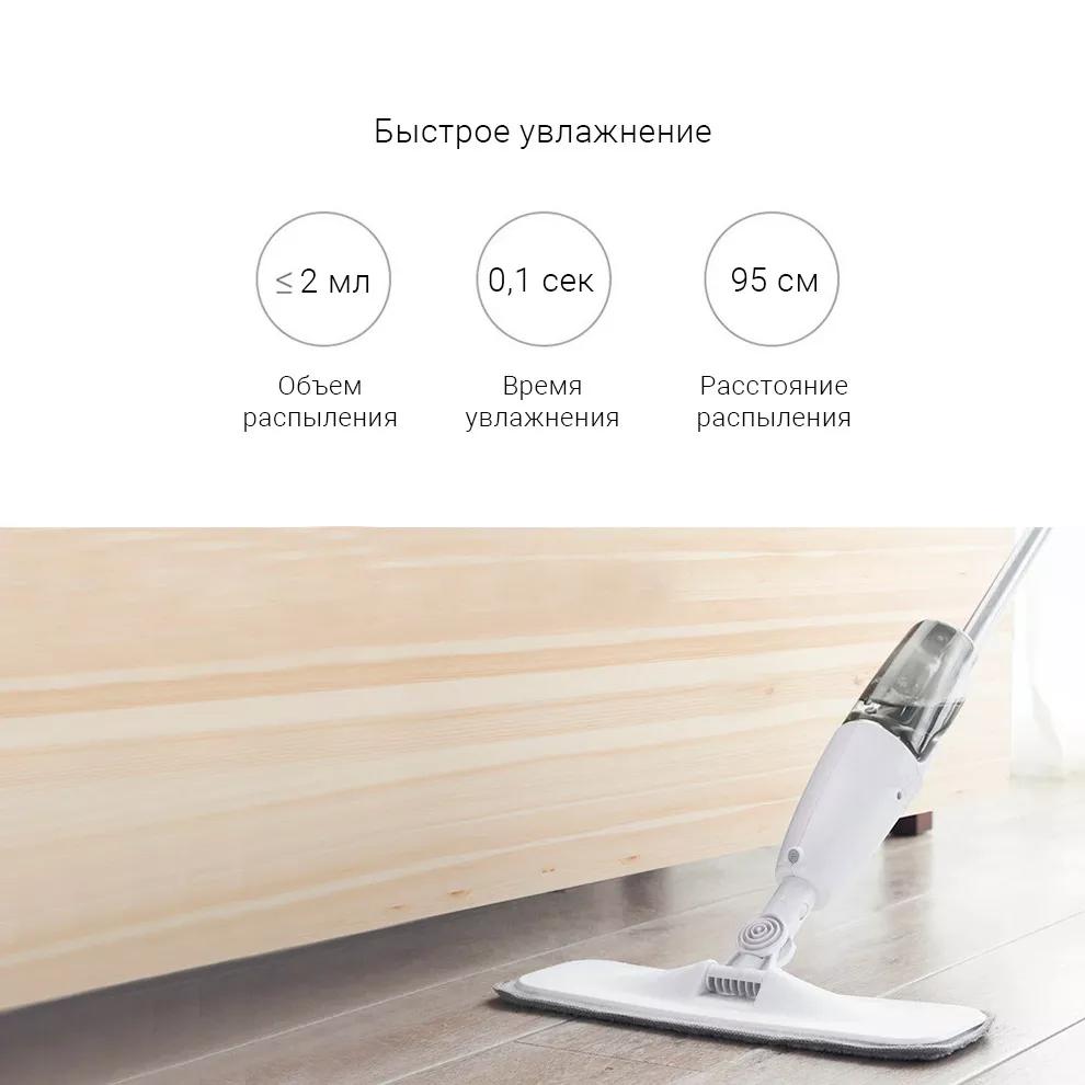 Для того, чтобы увлажнить необходимую поверхность, понадобится всего 2 мл воды и 0,1 секунды. Вода может равномерно распыляться на расстояние до 95 см. После использования швабры пол высыхает достаточно быстро. Это экономит время и силы.