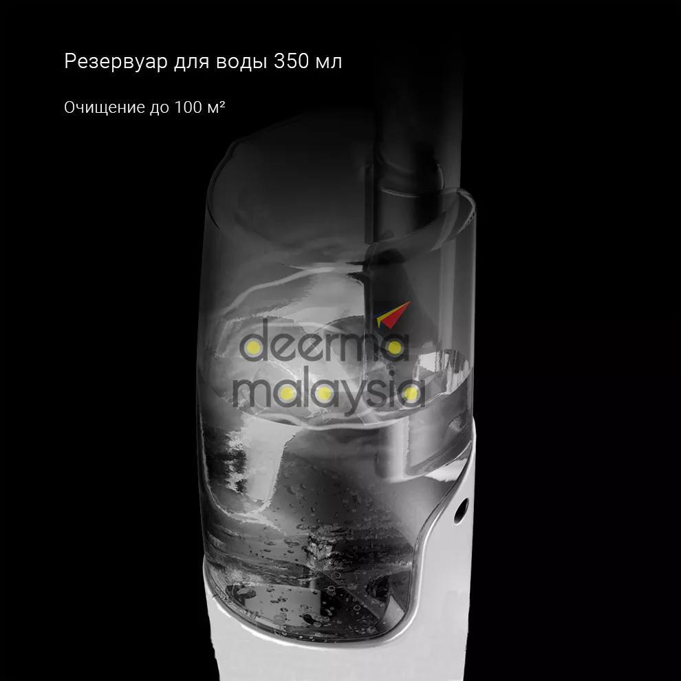 Встроенный резервуар может вмещать в себя до 350 мл воды. Наполненной емкости хватит на очищение поверхности площадью 100 м². Его легко снять и поставить обратно.