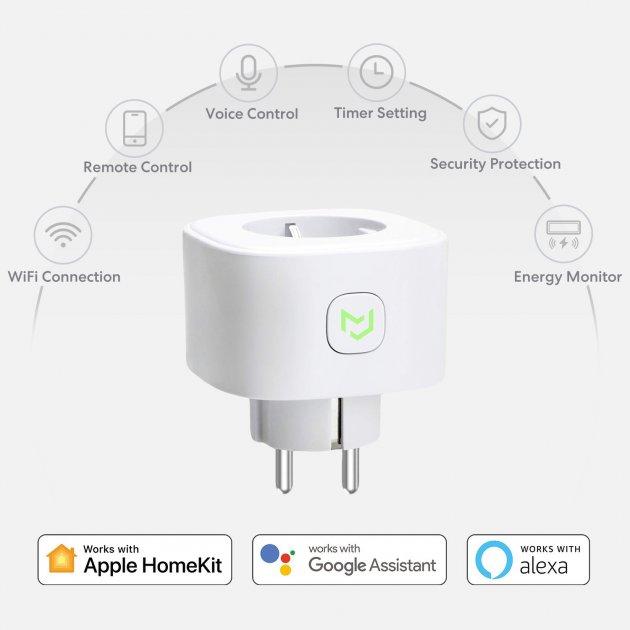 Умная розетка Meross HomeKit MSS210 оснащена модулем Wi-Fi. Это позволит управлять различными электрическими приборами с помощью голосовых помощников Amazon Alexa, Google Home Assistant, Siri или с экрана смартфона.