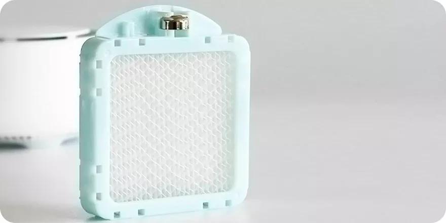 Пластина напоминает пчелиные соты – такая структура способствует экономному расходуматериала. Одна насадка рассчитана на 90 дней использования при ежедневной активации фумигатора на 8 часов. Этого достаточно, чтобы защитить дом от комаров на всё лето. Поверхность пропитана трансфлутрином. Вещество эффективнокак оружие против комаров и экономично расходуется – для убийства насекомого достаточно малой дозы компонента. Пластина содержит сменный фильтр, защищающий фумигатор от перегрева.